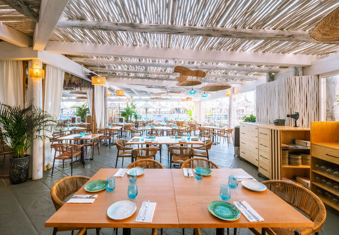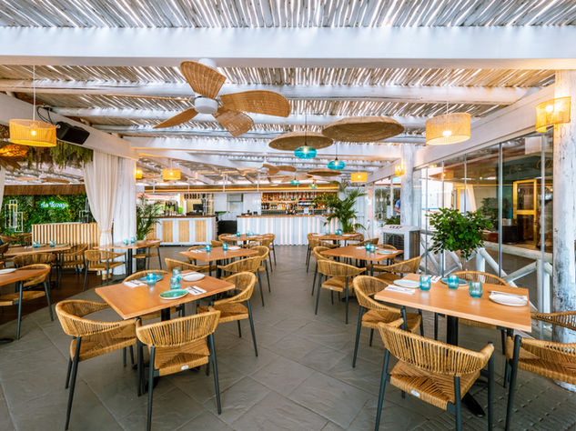 Este restaurante se distingue por sus dos zonas claramente definidas: un área interior sofisticada y un espacio exterior al aire libre con vistas cautivadoras.