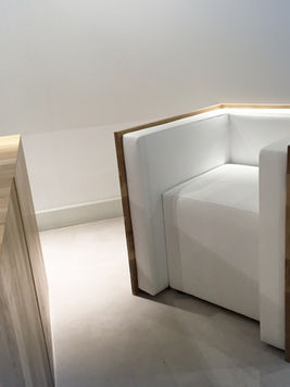 El sillón-mesa MUEBLE VERSÁTIL fue diseñado para un proyecto de oficina colaborativa multifuncional, hecho que determinó su diseño desde su concepción, siendo capaz de contener en un mismo producto un sillón, un puf y una mesa.